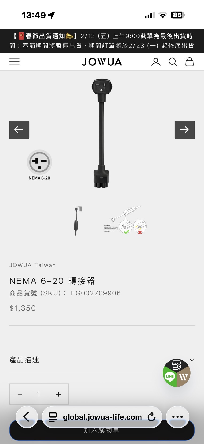 售全新未拆NEMA 6-20 轉接器