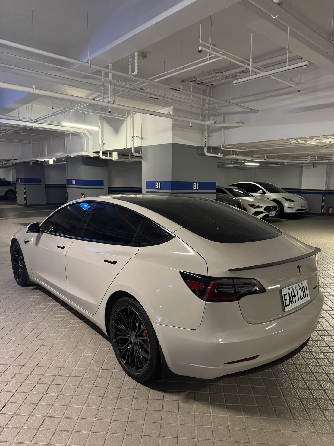 自售 2021 Model 3 Performance 碳纖維擾流板 Performance 高性能版全輪驅動 Performance 踏板 1.全車包水泥灰 2.輪框改AG鋁圈,輪胎米其林EV胎 3.里程數低,約37000km 4.車子在台中市 開價100,價格可談~